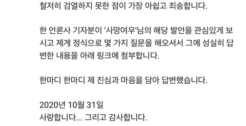 이상민씨가 유튜브를 통해 공개한 입장문 전문 캡쳐본입니다.