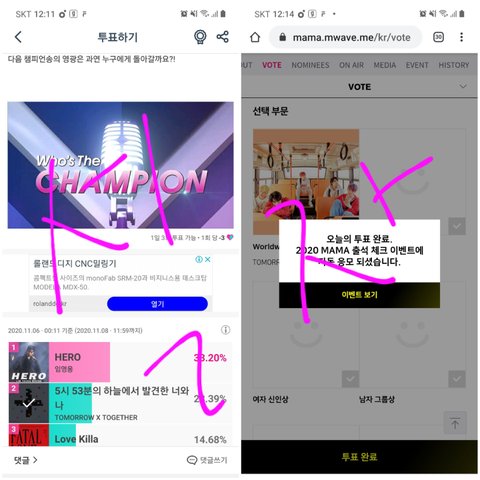 스밍과 투표 오늘도 잊지말고 잘부탁해...