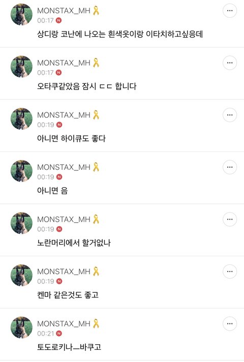 시작은 안무 코스튬 이야기하다가 애니이야기로 빠졌는데 찐 오타쿠라서 팬들도 잘 모르는 얘기 신나서 30분동안 함(댓글 89개...)