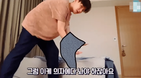 그래서 의자에 접어서 두거나 걸쳐놔야되는데