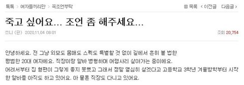 그래도 이번에 고민하다가 글 올렸는데 많은 분들이 정말 걱정해주시고 좋은 정보도 많이 알려주셔서 개인적으로 너무 감사했어요. 주변에 말하기 어려운 고민이었는데 이렇게 저한테많은 관심과 힘이 되어주실 줄 몰랐거든요... ㅠㅠ