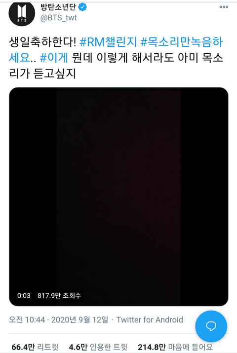 2. 생일축하 RM챌린지