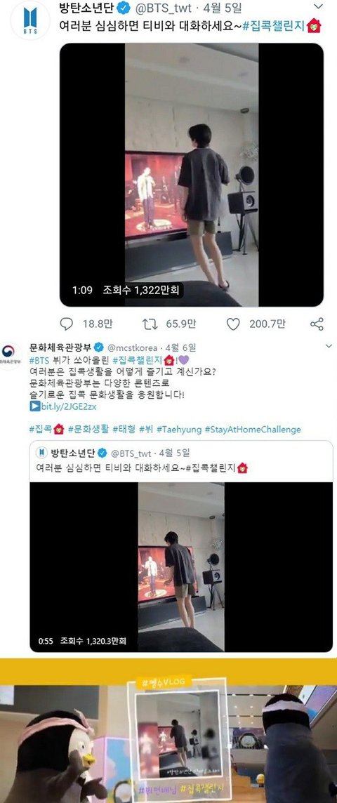 뷔의 집콕챌린지는 방송에도 여러 번 언급되고