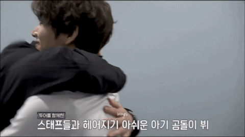 같이 고생한 멤버들과 스텝분들을 안아주고 싶었던 뷔가