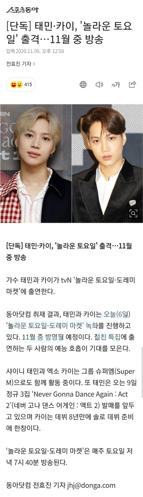 태민 팬인데 카이팬이야 ..^^ 둘다 좋다고 ㅎㅎ
