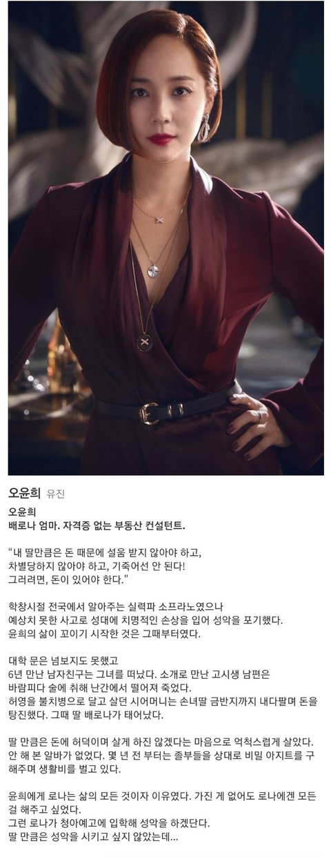 김순옥 신작 드라마 <펜트하우스>에서 출연중인 유진(극 중 이름 오윤희)