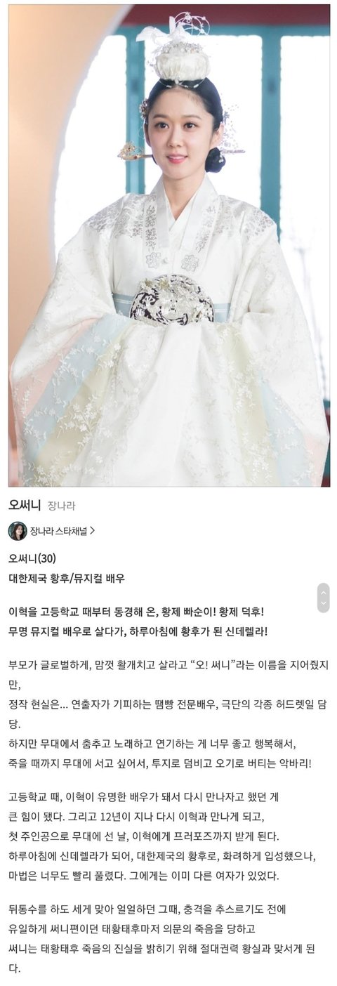 이전에 <황후의 품격> 주인공 '오써니' 시놉 설정을 보면,