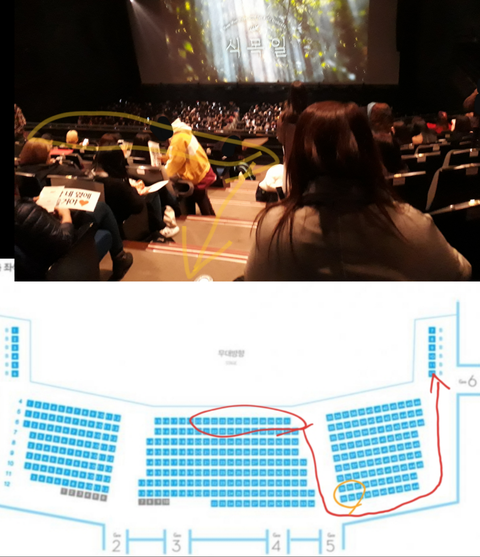 성규가 중블 맨 앞자리 있다가 오른쪽 자리로 옮긴 적 있었거든?