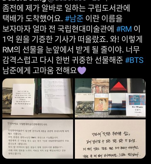 남준이가 기증한 책들이 도서관에 도착했대!