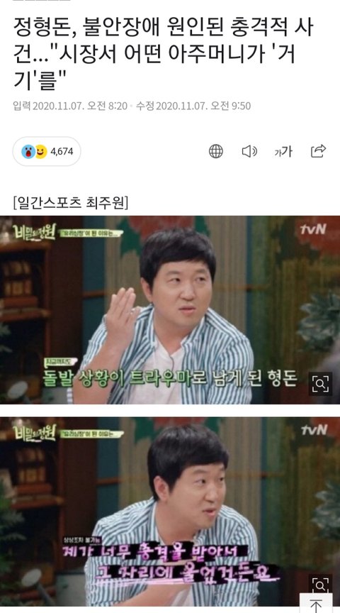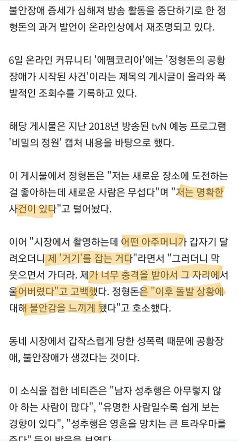 얘들아 정형돈 성폭력당해서 공황장애 온거래