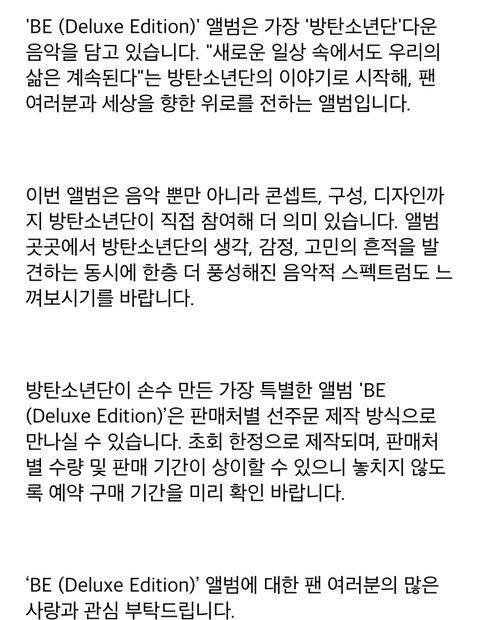 두달 전 BE 앨범 예약구매 공지