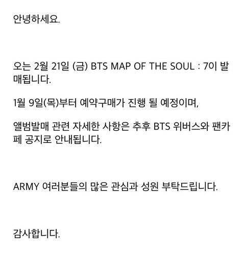 올해초 map of the soul:7 앨범 예약구매 공지 ㅋㅋ