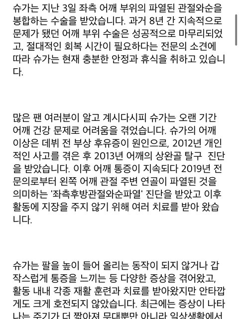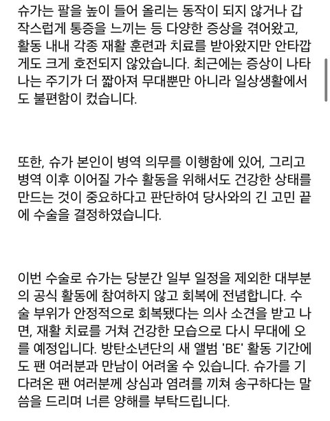 어제 윤기 어깨수술 공지