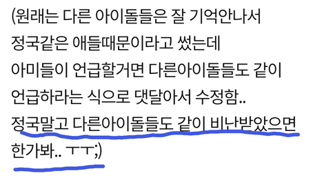 정국말고 다른아이돌들도 같이 비난받았으면