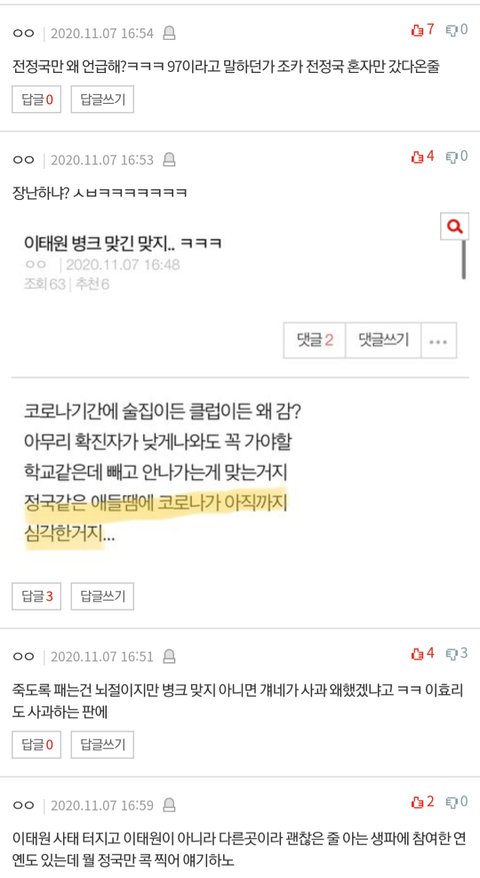 정국같은 애들때문이라고 썼는데