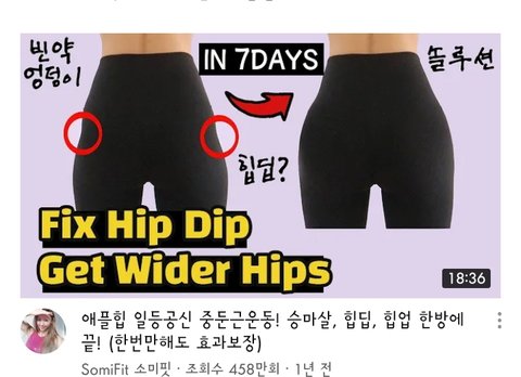 그 다음 힙딥 부분 채워주기 힙업 운동 https://youtu.be/Kymv9On2-VA
