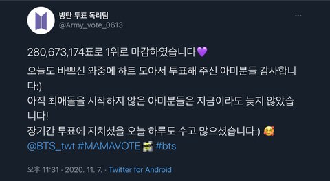 다들 오늘도 고생많았어 이제 타 시상식 투표하러 가자 ❤️❤️
