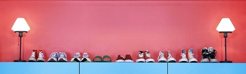 분홍 젤리 소파에 파란 배경 짱이지 않냐