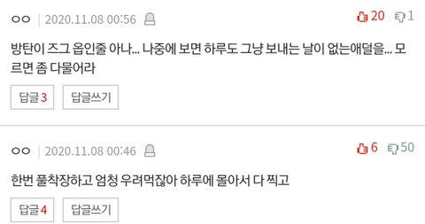 방탄이 즈그 옵인줄 아나... 나중에 보면 하루도 그냥 보내는 날이 없는애덜을... 모르면 좀 다물어라