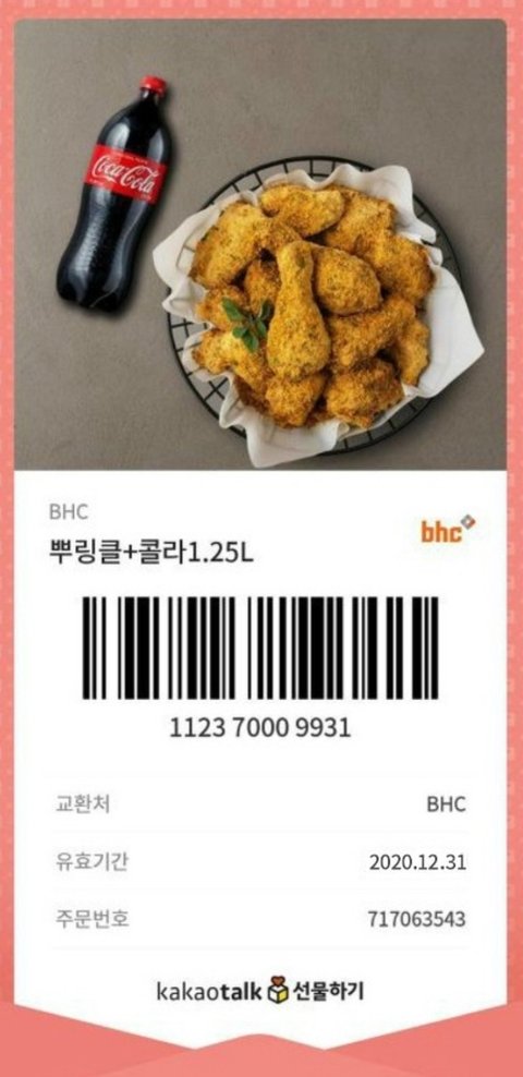 학교에서 받은건데 근처에 bhc없어서 배달도안옴..