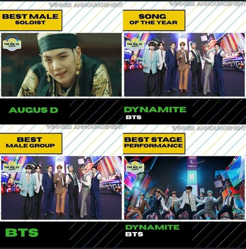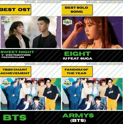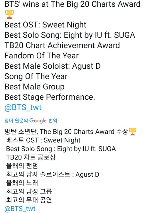 에잇이 베스트 솔로송 부분에서 상 받았습니다.