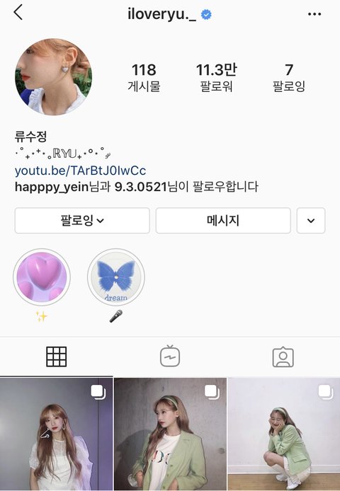 안 가린 아이디는 러블리즈 멤버 예인, 지애 아이디야! 사진 갯수 제한때문에 다른 사진들을 못 가져오고 밑에 뜨는거만 캡쳐했는데 개인적으로 놀이터에서 찍은거랑 프로필사진이랑 같은 날 찍은거 좋아행 류수정 인스타는 노이즈 들어간 사진들이 많은것같고 하이틴감성이 꽤 있는것 같아