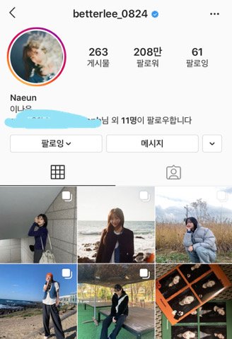 이번에는 아예 관계없는 분들 아이디라 가렸구 이나은 인스타는 많이 유명하지! 개인적으로 이나은 흑백사진들이랑 릴레이댄스때 입었던 교복사진 정말 좋아해 업뎃이 빠른편이지만 피드정리도 자주하니까 좋아하는 사진 있으면 미리미리 캡쳐해두거나 하는게 좋을듯ㅠㅠ 저번에 실시간으로 피드정리 하는거 봤어
