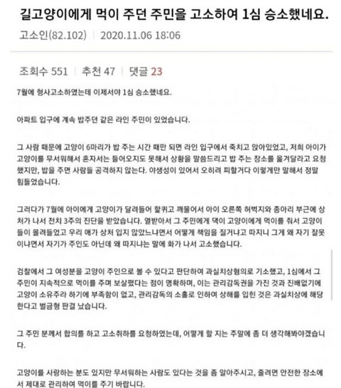 본문 같은 경우는 그럴 수 있지만 평소에는 길고양이들이 사람한테 그렇게까지는 피해 안주는 것 같은데 ㅋㅋ