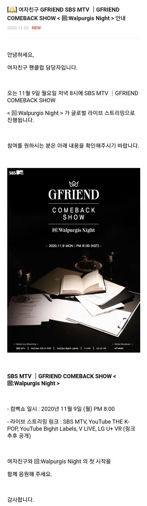 여자친구 오늘 컴백 많관부 ❤