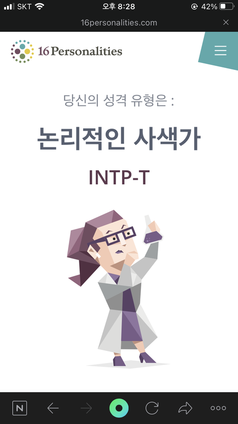 자꾸 entp이랑 번갈아 가면서 나옴 근데 뒤에 t는뭐임 좋은거임 나쁜거임? 휴 난 사실 혼자 있는게 좋아 소심하고 생각이 너무 많기도 하고 다같이 놀고난뒤엔 너무 피곤하거든