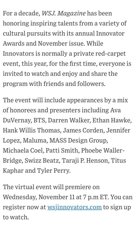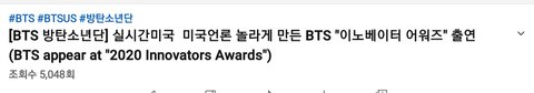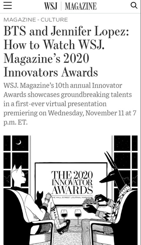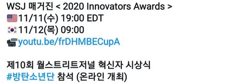 방탄 미국 2020 Innovators Awards 온라인 참석