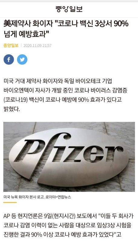 화이자에서 90% 효과 있는 백신 개발해서 임상실험도 몇주 안남았대