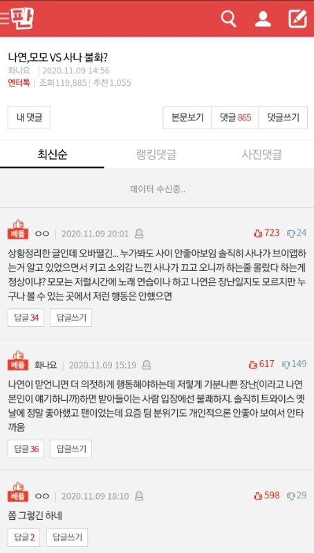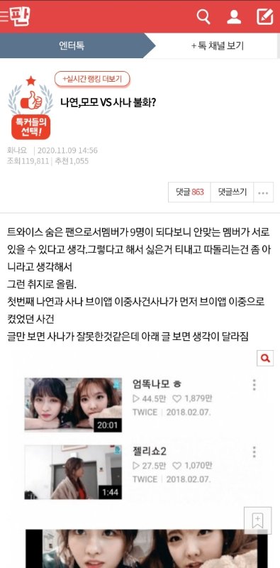 나연 : ㅋㅋㅋㅋㅋㅋㅋ ㅅㅂ 판년들 이거봤냐 톡선봐봐 조카웃기네ㅠ