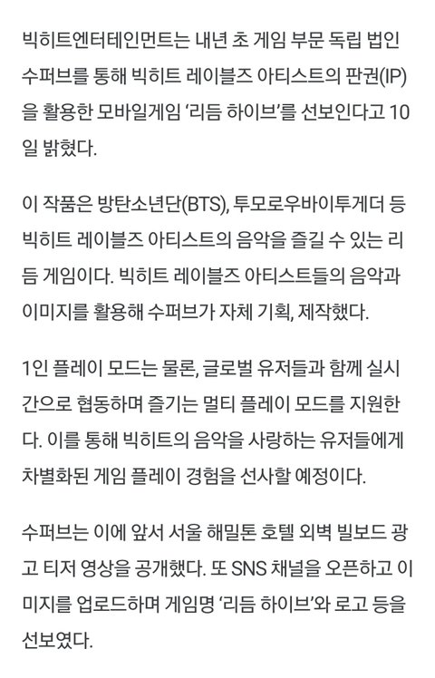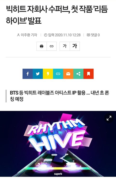 빅히트 자회사 수퍼브, 첫작품 리듬 하이브 발표