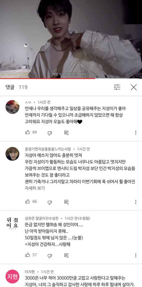 영상 보면서 댓글 읽으면 너무 슬픔ㅠㅠㅠㅠ 지성이 무릎 아파서 활동 중지된 거랑 성인되기까지 51일 남은 거 생각하면 더 슬퍼..