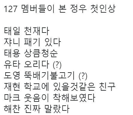 정우 첫인상 뭔가 멤버들 성향 느껴져.