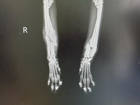 복합골절된 로이의 왼쪽 다리를 수술하는 데만 6시간 반, 부러진 송곳이를 수술하는 데 4시간이 걸렸습니다. 골절 부위에 생긴 가골을 모두 긁어내고 제대로 접합하고 플레이트를 박아 고정해야 했기 때문입니다.