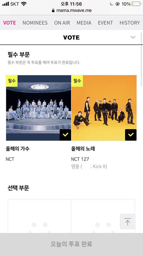 왜 이러지 진짜ㅠㅠ 오늘 입덕해서 투표하려는데 선택 부문에서 투표하려고 하는데도 안 눌러지고 투표 완료도 안 눌러져