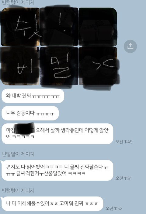 얘네 집 앞 벤치에 앉아서 2시간동안 얘기하다 헤어지고 집 가는데 저렇게 사진이랑 톡왔어 ㅋㅋㅋㅋㅋ 너무 귀엽다 진짜.. 다들 응원해줘