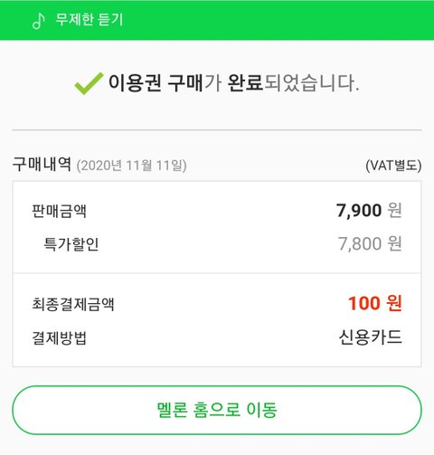 멜론이용권 껌한통값도 안되는 꼴랑 100원이니까 다들 컴백전까지 준비하자!