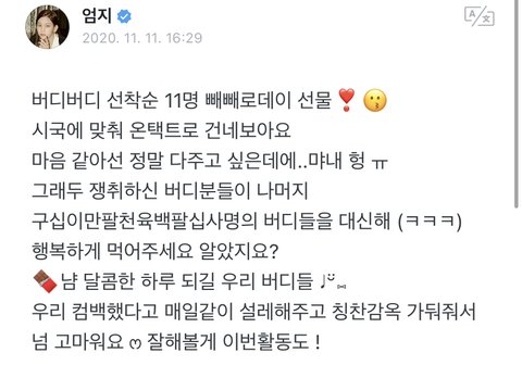 빼빼로 데이라고 팬들한테 페레로로쉐 11개 쿠폰줌 (편의점도 다양함)