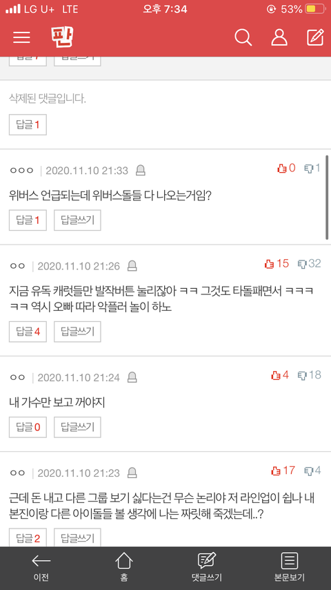 근데 처음 우리 욕하면서 언급된 댓이 이거임 이거보고 난 판럿들이 타그룹 욕하는거 본적없는데 개띠용해서 찾아보니까 짹에서 언급한거였음 타팬들은 짹캐럿들이 욕한거 언급하면서 댓에서 욕함