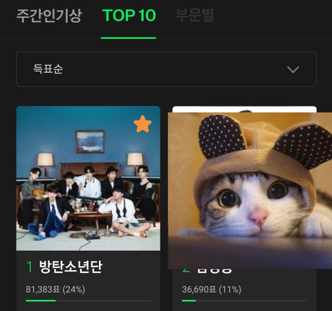 현재 2위 가수분 득표수가 2시간 전부터 훅훅 늘고있음)
