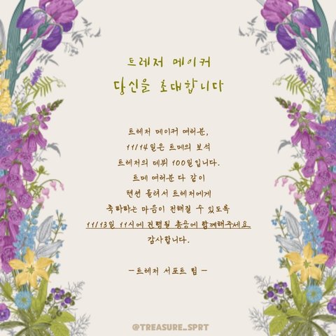 해시태그 총공 초대장!! https://twitter.com/TREASURE_SPRT/status/1326503807392473088?s=19