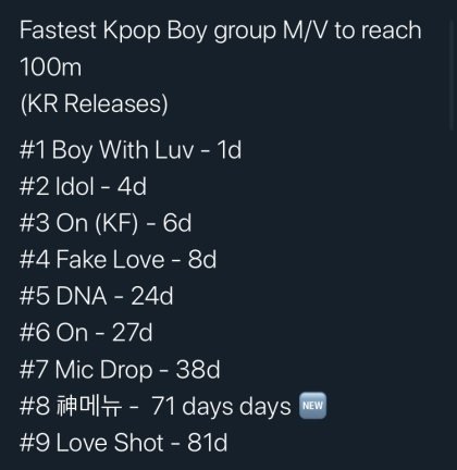 여기 나온 대로면 우리 1억뷰 기록 진짜 빠른 편이다