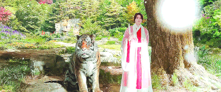 여주는 호랑이 눈썹을 통해 자신의 모습을 보면서