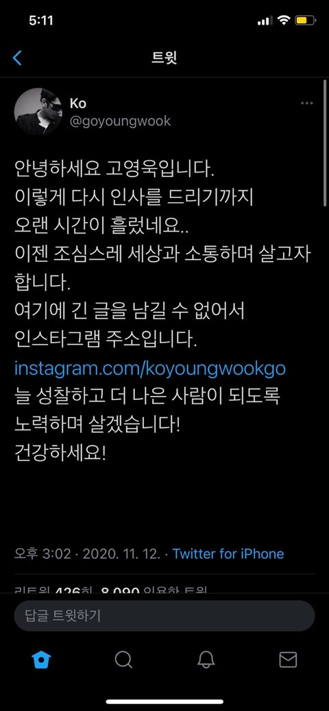 고영욱(그 성범죄자 놈맞음) 걔 트위터 살리고 돌아옴 ㅋㅋㅋㅋ 미친거아녀?? 뒤졋으면