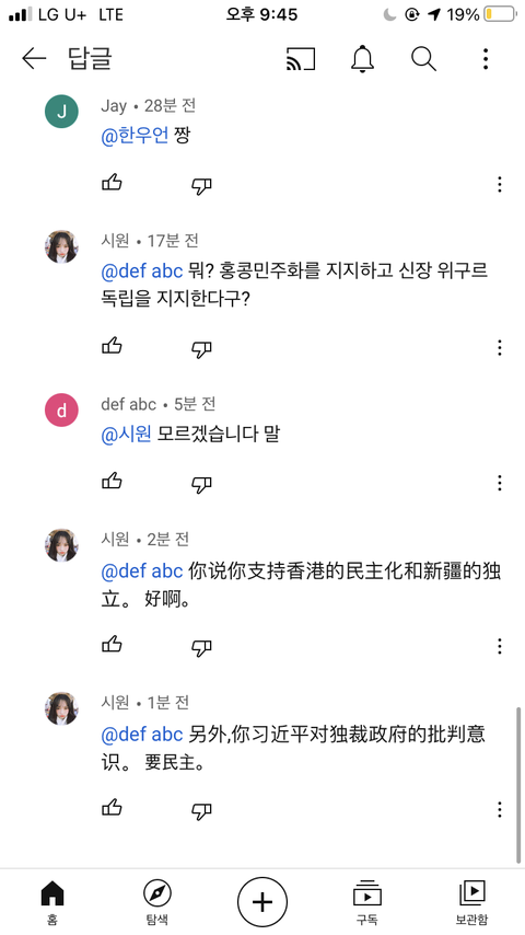 유튜브 하는 거 보면 국내에 있는 조선족이거나