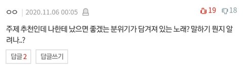 나한테 났으면하는 분위기가 담겨져있는 노래 말해보자! (*'o'*)♪