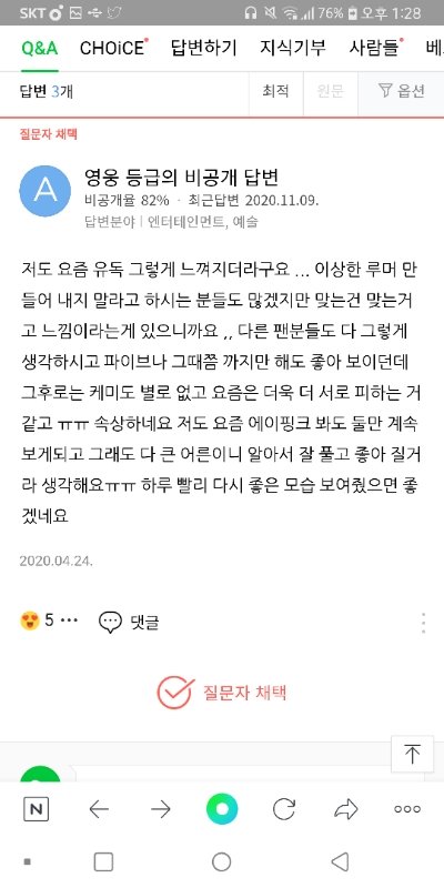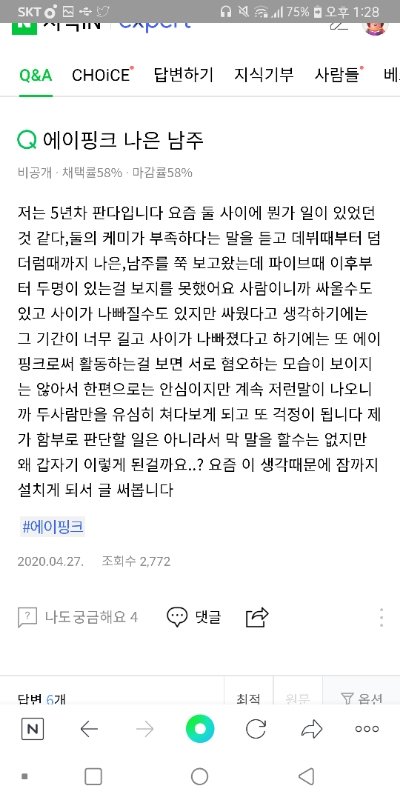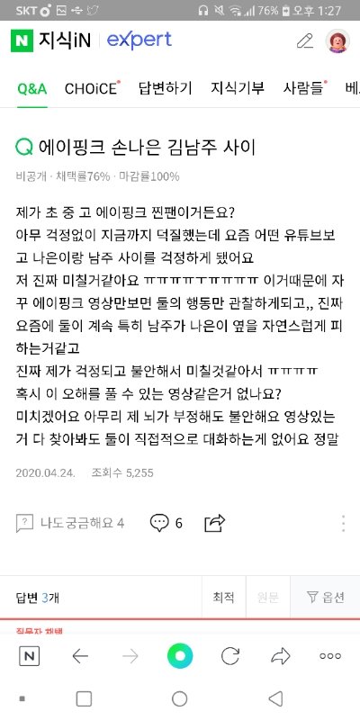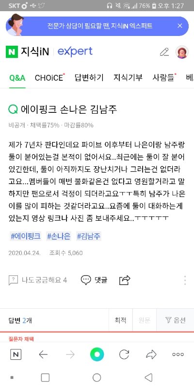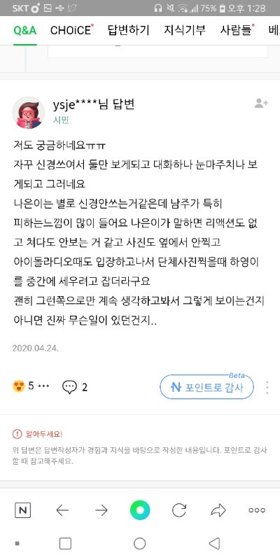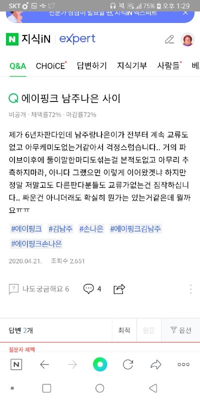 나은 남주 ㅜ 지식인이나 유튜브 가보면 ㄹㅇ 둘이 어색해져서 싸운거 아니냐 이런거 개많음 솔직히 남주가 나은이 피하는거 개티나는데 몇몇 팬들 사이 좋다고 입막음중ㅋ 아니 사이가 좋으면 어떻게 2년동안 서로 얘기도 안하고 케미도 안보여줘? 말이 안되는데
